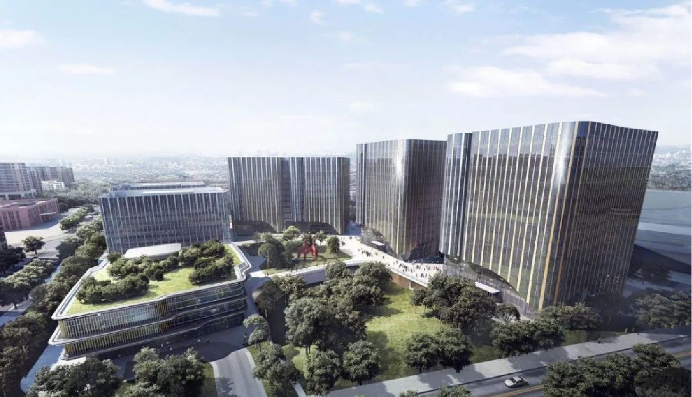 科技園項目一期總建筑面積約22.5萬平方米,包含6棟研發(fā)樓和2層地下車庫(地下共3層,一二期地下相互聯(lián)通),還設有下沉廣場和商鋪,敞亮的下沉廣場將所有建筑連在了一起。T6樓設置了戶外屋頂花園,特別鋪設